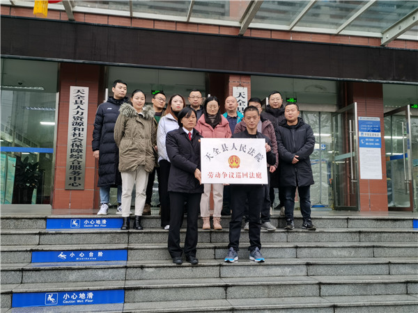 四川新闻网消息 为进一步健全完善劳动争议多元化解机制,深化提升新时代“枫桥经验”,构建和谐劳动关系,充分发挥在多元化纠纷解决机制改革中的引领、推动、保障作用,12月4日,天全县法院在天全县劳动人事仲裁院挂牌成立劳动争议巡回法庭,天全县人力资源和社会保障局、天全县司法局、天全县总工会同时派员出席挂牌仪式。天全县法院于当日就地开启劳动争议巡回审理第一场,20余名干部群众到场参与旁听。