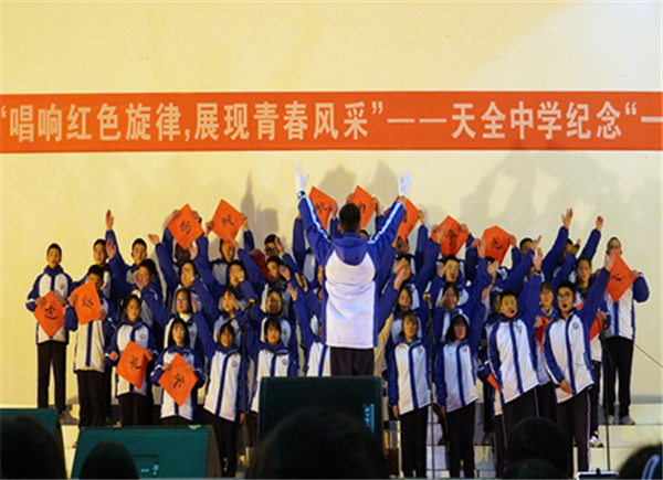 四川新闻网消息(杨德慧) 为贯彻落实“德智体美劳”一体化全面发展教育要求,纪念“一二·九”运动85周年。12月16日下午,天全中学举行以“唱响红色旋律,展现青春风采”为主题的纪念“一二·九”歌咏比赛活动。