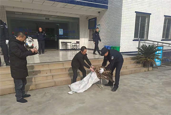 四川新闻网消息(王岸霖 王芦蓉)12月23日晚,芦山县公安局宝盛派出所接群众报警称:在水沟边上看见一只受伤的“大鸟”,我已经把它抱回自己家中,请你们来处理一下。