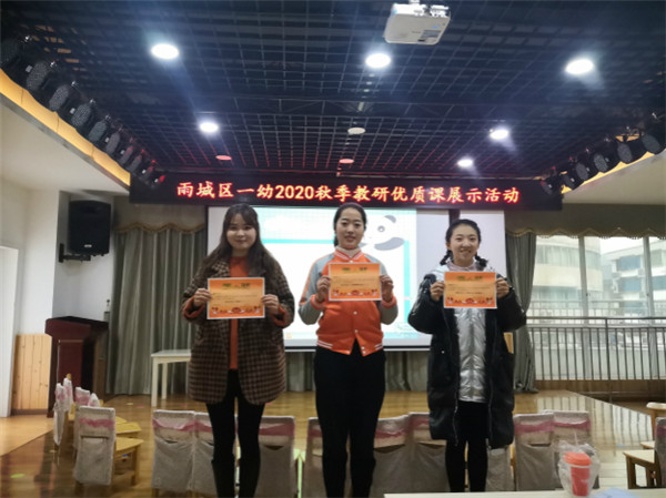 最后,唐运慧老师为今天参加优质课展示的三位老师颁发奖状。 “一花独放不是春,百花齐放春满园”。本次优质课展示活动不仅为教师们搭建了一个挖掘潜能,展现风采,超越自我的平台,也为所有教师创造了观摩、相互学习、研讨交流、不断反思的学习氛围。我们将以此为契机,不断探索,全面推进,以游戏为基本活动,让孩子拥有幸福快乐的童年。(雨城区一幼供稿) |