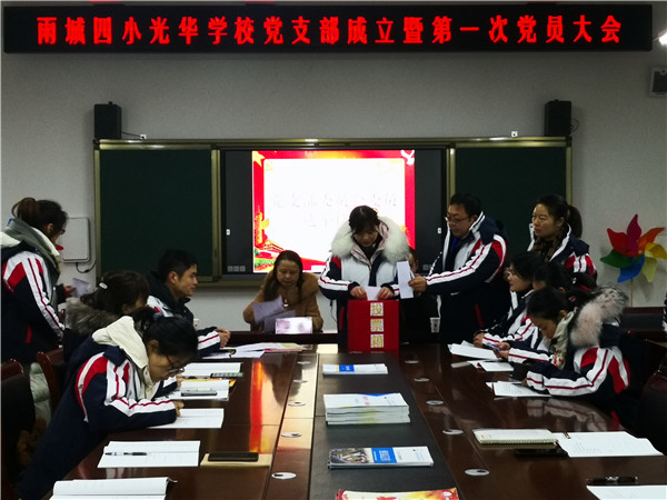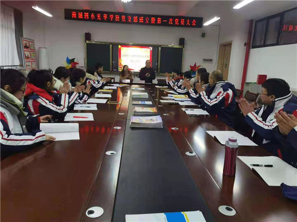 四川新闻网消息(罗明强)1月7日,中共雨城区四小光华校区党支部成立大会在学校会议室隆重召开,会议由雨城四小教育集团党总支书记郝琚英同志主持,雅安市雨城区委教育工作委员会杨星虎同志出席成立仪式。