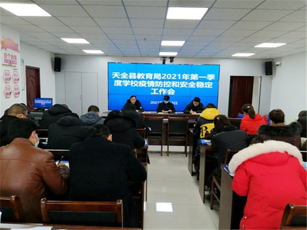 四川新闻网消息 1月15日,天全县教育系统召开2021年第一季度学校疫情防控和安全稳定工作会。全县各中小学、幼儿园校(园)长等参加会议。 会议传达了近期省、市、县疫情防控和安全稳定工作会议精神,组织学习了《四川省2021年新冠肺炎疫情防控工作指南 (第一版)》《关于切实加强春节期间疫情防控有关工作的通知》等文件精神,安排部署了近期疫情防控工作和校园安全稳定工作,要求各中小学、幼儿园切实增强工作责任感和使命感,严格落实中小学“两案九制”“十个到位”“五有一网格”措施及疫情防控工作技术方案等工作要求,抓实抓细寒假前后安全稳定和疫情防控工作。同时,对照《雅安市中小学(幼儿园)新冠肺炎疫情防控期间开学筹备工作评估验收指标》自查自改,提前谋划春季开学工作。