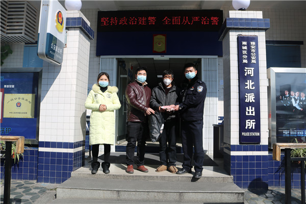 1月17日下午16时许,群众高某到河北派出所报警称其背包遗失,需要帮助。经了解,高某系外出务工人员,当日准备在西门车站乘车返回天全老家,却在车站外不慎将背包遗失,包内装有务工所挣的3万6千余元现金,十分着急。