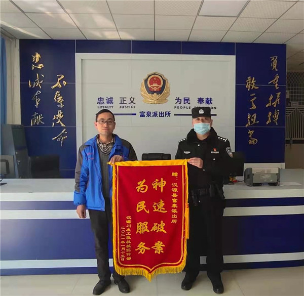 四川新闻网消息 1月19日,群众张某来到汉源县公安局富泉派出所,将一面写有“神速破案,为民服务”的锦旗送到派出所办案民警手中,以表达对民警的谢意和感激。