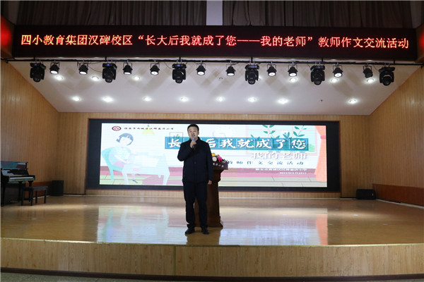 四川新闻网消息 “小时候,我以为你很美丽,领着一群小鸟飞来飞去。小时候,我以为你很神奇,说上一句话也惊天动地,长大后我就成了你……”为了认真贯彻有关对广大新时代教师争做“四有好老师”、当好“四个引路人”的要求,进一步加强新时代教师队伍建设,努力打造一支师德高尚的教师队伍。雨城四小教育集团汉碑校区根据区教育局工作要求,以“我的教师”活动为契机,于1月25日下午开展了“长大以后我就成了您—我的老师”教师作文交流活动。