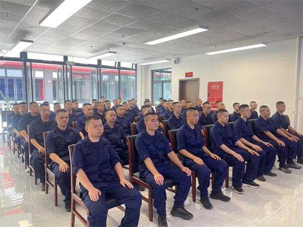 首批专职救援队员到达基地后,救援基地按照名册对首批专职救援队员进行点名分班,对所携带的个人物品进行点验,并举行了开班仪式,市政府副秘书长、市应急管理局局长叶飞在开班仪式上为首批队员介绍了基地基本情况,明确了培训期间的纪律规矩,并要求入职培训的新专职救援人员一定要坚持纪律队伍建设标准,对自我严格管理,严格要求,养成良好的学习、训练、工作、生活秩序,真正实现从新人到熟手的完美转变。