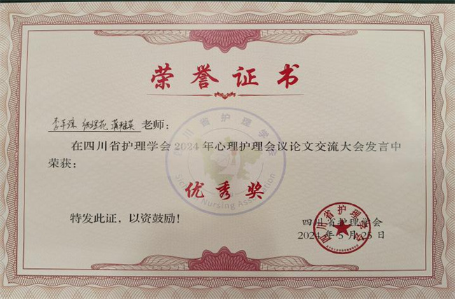 据悉,此次学术年会共收到150多篇心理护理相关论文,经过专家初评,30篇选入大会发言,58篇选入壁报展示。雅安市人民医院护理团队在大内科护士长、心理小组负责人李车琼的组织和指导下,共投出14篇论文,其中9篇被选中。25日上午,经过现场汇报展示,5位专家现场评分,共获得7个优秀奖,其中大会发言2篇,壁报交流5篇。