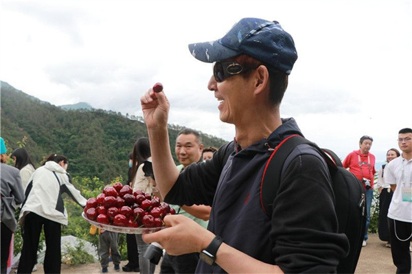 很快,嘉宾们手中的果篮装满了红彤彤的樱桃,大家脸上笑容满面。
