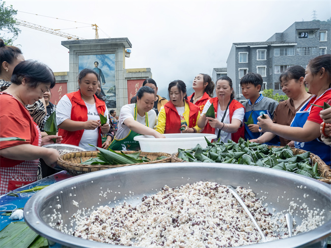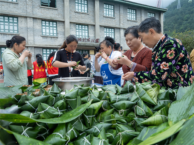 四川新闻网消息(周万龙 记者 杨德慧)又是一年端午到,大渡河畔粽飘香。6月6日,石棉县王岗坪彝族藏族乡安置房广场,“共筑新家园·传承端午情”民俗文化活动热闹非凡。群众纷纷拿起粽叶,兴奋又认真地动起手来。折粽叶、填糯米、裹叶子、扎线……一道道工序有条不紊。看着自己包好的粽子,村民们脸上露出了幸福的笑容。
