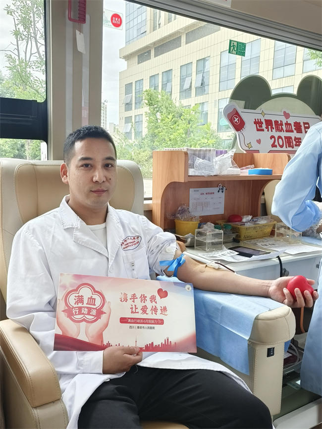 殷殷热血传递生命希望,一张张可爱的笑容在献血车上汇集,不仅仅是一份份爱心的传递,更是一种社会责任与担当,市人民医院的党员、职工用行动传递着生命希望,为爱行动,热血同行。(供稿:雅安市中心血站)