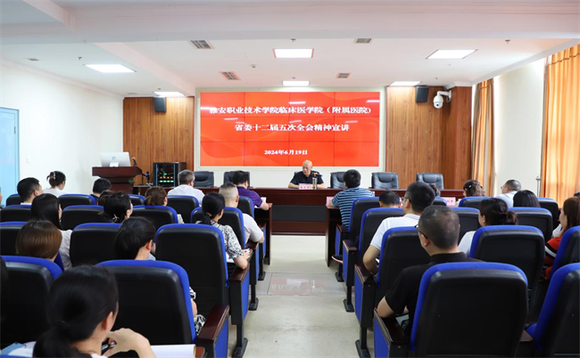 四川新闻网消息 6月19日,雅安职业技术学院党委常委、副校长樊正康来到雅安职业技术学院临床医学院(附属医院)为全院中层及以上干部、科室骨干宣讲省委十二届五次全会精神,会议由临床医学院(附属医院)党委书记杨泽刚主持,临床医学院(附属医院)班子成员、中层干部共计60余人参加。