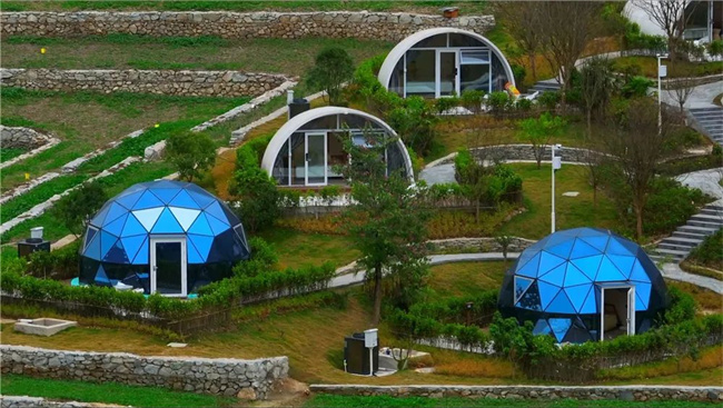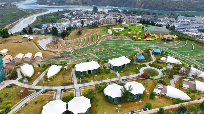 距离县城约11公里,占地面积约86亩,是一个集综合示范实践教育基地、民俗文化体验、亲子休闲度假区于一体的综合性旅游度假现代化农业园。园区主要分为游客接待中心、帐篷酒店、水乐园、星空露营区、民俗游戏趣味体验区、农耕体验研学区、萌宠生态喂养区、无动力游乐区、花海观光区九个区域。其中,造型各异的帐篷酒店也已完成了室内装修,会客区、休息区、卫生间等设施设备一应俱全。