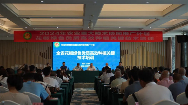 四川新闻网消息(黄星蕾 记者 杨德慧)为扎实推进花椒农业重大技术协同推广计划项目落地见效,推动全省花椒产业高质量发展。7月10日,由四川省农业农村厅主办,汉源县农业农村局承办的全省花椒绿色优质高效种植关键技术培训在雅安市汉源县举行。四川省政府参事胡强、省园艺作物技术推广总站副站长卢戟,县政府党组成员、永定桥水库管理中心主任李树敏,来自12个市(州)农业农村局经作站站长、10个项目省级单位项目团队专家、13个项目示范县负责人、11个花椒发展重点县负责人、花椒行业企业代表等140余人参加此次培训。
