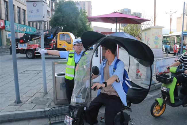 电动自行车作为一种轻便的交通出行工具为群众的出行带来了许多便利受到不少群众的青睐,有不少家长对未成年人驾驶电动车出行危险性并不了解,放心让孩子自己骑电动车出行,却不知这种行为其实存在极大的安全隐患。行动中发现,不少家长及学生存在未按规定佩戴安全头盔、未成年人驾驶非机动车、不按规定载人等违法行为。