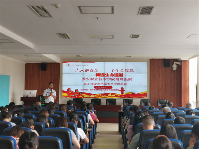 培训会上,四川省消防协会科普教育工作委员会吴俊杰教官作为主讲人向全院职工开展消防安全知识技能方面的培训。他通过医院火灾案例详细阐述了医院火灾的危险性,深刻剖析了引发医院火灾原因,讲解了预防火灾发生措施和初期火灾扑救、火场自救逃生等知识。