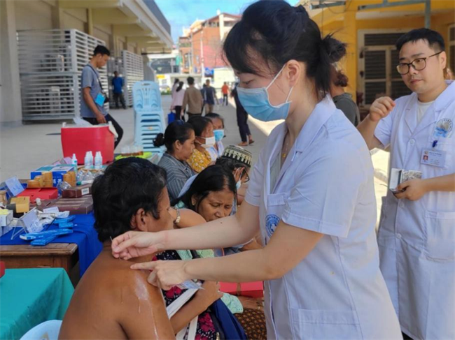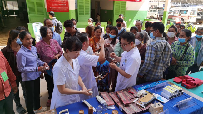 尤为引人注目的是,医疗团成员现场演示了拔罐、推拿、艾灸、针刺、刮痧、梅花针等中医传统疗法。这些看似简单的操作,却蕴含着深厚的中医理论和丰富的实践经验,能够有效缓解各种身体不适,提升人体免疫力。柬埔寨民众纷纷上前体验,不少人在亲身体验后表示,中医的神奇疗效让他们大开眼界,对中医文化产生了浓厚的兴趣。