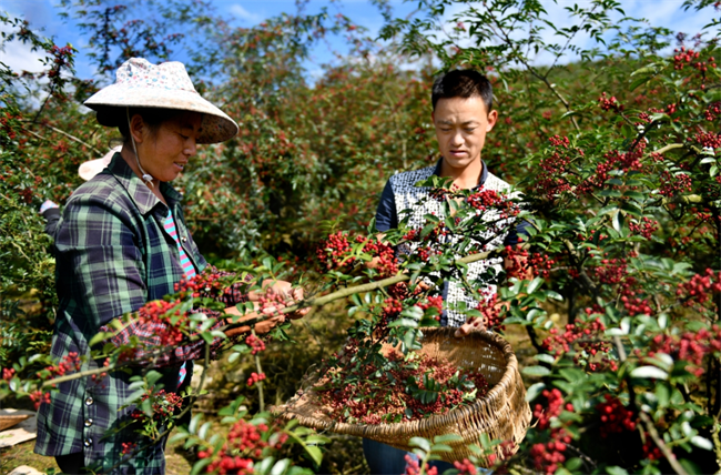 四川新闻网消息 八月的汉源县清溪镇,椒香四溢。颗颗火红、饱满的花椒挂满枝头,椒农们穿梭在浓郁的椒香中,手法熟练地采摘着花椒。