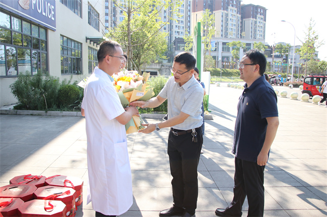 2024年8月19日是第七个“中国医师节”,为进一步加强医师队伍建设,营造尊医重卫的良好氛围。8月19日,雅安市名山区委常委、宣传部部长吕洪锐,区人民政府副区长姜肖在区卫生健康局主要负责人的陪同下走访慰问了部分一线医务工作者,向他们致以节日的问候和祝福。