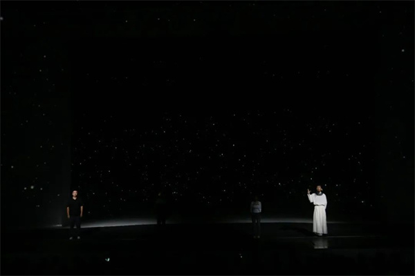开场秀中书画少年杨坤燃与李白“相遇”,跨时空对话,探讨流传后世的古诗,将观众带回李白的故事里,让人眼前一亮。