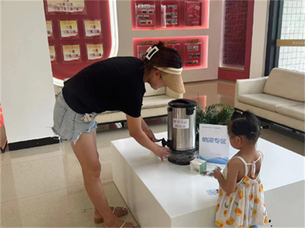 笔者在政务大厅看到,除了前来办事的群众,部分附近来纳凉的居民和户外工作者也络绎不绝,“最近外面太热了,政务大厅有冷气,空间也大,现在还有免费的酸梅汤喝,小孩也喜欢来这里玩”,带着孩子来纳凉的王女士对笔者笑着说道。
