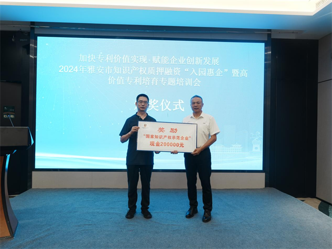 会上,魏守国为雅安市国家知识产权示范企业颁发20万一次性奖励。市知识产权服务促进中心、中国人民财产保险股份有限公司雅安分公司分别介绍知识产权质押融资补贴政策和知识产权保险相关产品。同时,围绕《四川省知识产权促进和保护条例》宣贯、知识产权强企培育、贯标、高价值专利培育、专利奖申报等内容开展专题培训。