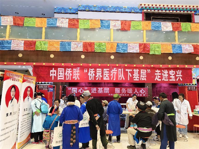 中国侨联“侨界医疗队”医务志愿者们为群众提供免费血压、血糖、腹部B超检测等服务,赠送常用感冒药、烫伤膏药等药品,发放各类健康知识宣传折页,普及健康知识,引导各族群众养成良好的卫生生活习惯。