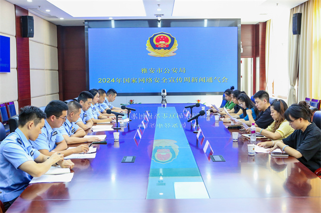 9月11日,雅安市公安局召开2024年国家网络安全宣传周新闻通气会。市公安局政治部、网安支队、刑侦支队、治安支队有关同志和省市多家新闻媒体记者参加通气会。