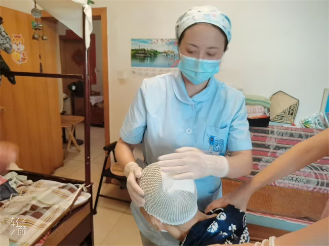 9月17日,正值中秋佳节,医院接到一名患者家属的申请,为行动不便的96岁老人伤口拆线,经医院伤口/造口专科护士评估后,上门至老人家中,为头皮裂伤清创缝合术后的居家老人进行伤口拆线,顺利完成拆线后,告知了家属拆线后的注意事项,并为家属示范、讲解长期卧床老年人的护理方法,教会家属翻身,预防压疮;叩背,预防肺部感染;踝泵运动,预防静脉血栓等日常护理方法,让家属学会日常健康照护,降低老人并发症风险。
