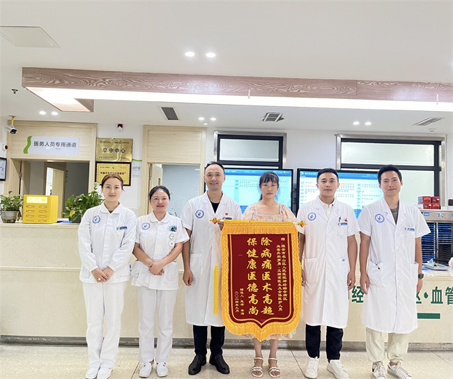 原来,在几天前名山区人民医院和紧密型医共体单位百丈卫生院,紧密合作上演了一场与时间的竞赛,为一名急性脑梗死患者行急诊介入取栓术,成功挽救患者生命,患者及家属对神经外科的医护人员表达了感激之情。