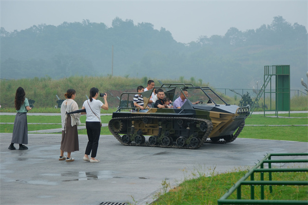 在国防科普教育基地,有现代军事武器模型、真人CS、体验式迫击炮等几十余种武器装备模型,游客可以亲身体验模拟军事射击,增强国防观念,掌握基本的国防知识,实现“军事梦”。