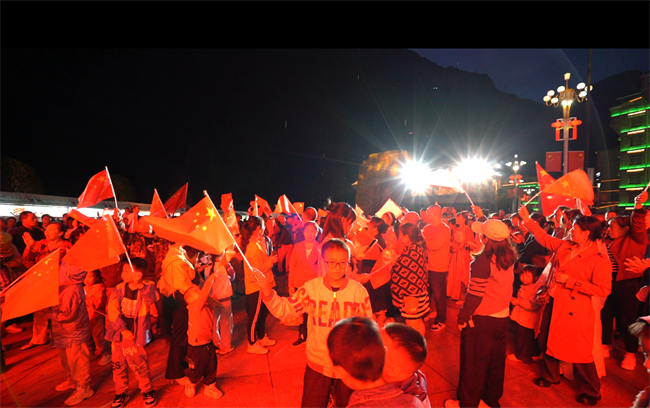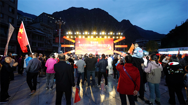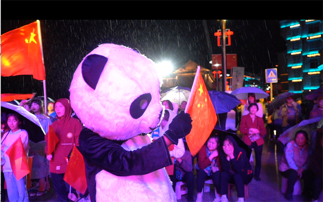 在穆坪镇红军广场,“熊猫慢城”系列文艺活动如约而至,尽管天空飘着细雨,但游客与市民的热情丝毫不减。现场红旗飘扬,气氛格外热烈,大家欢聚一堂,共同为祖国母亲庆生。