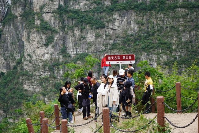 游客在这里不仅能领略大自然的鬼斧神工,还能感受彝族风情。国庆期间古路村再次迎来客流小高峰,日均客流量达到1000余人次,游客主要来自川渝地区。当地民宿客房出现一房难求情况,腊肉、核桃等土特产畅销。