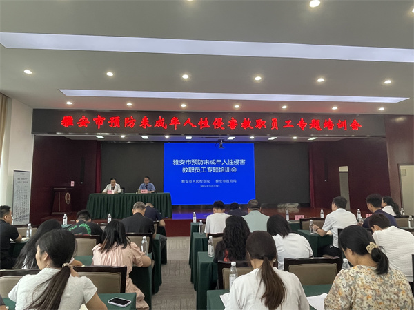 为进一步加强未成年人保护,切实落实《防范打击性侵未成年人违法犯罪 加强未成年人防性侵保护专项行动实施方案》,9月27日,雅安市教育局、市人民检察院采取视频会的方式举办了雅安市预防未成年人性侵害教职员工专题培训会,市、县(区)监察机关、教育局分管负责人及相关科室负责人,中小学校校长以及教职员工代表共计430余人参加培训,市委教育工委专职副书记、市教育局党组成员王英主持会议。