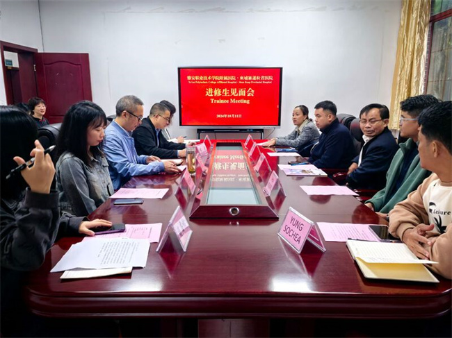 10月11日上午,雅安职业技术学院附属医院、柬埔寨暹粒省医院进修生见面会在雅安职业技术学院附属医院(以下简称:雅职附院)举行。5位来自柬埔寨暹粒省医院医务人员将在雅职附院中医·康复医学科进行为期一个月的学习。这是继去年之后,柬埔寨暹粒省医院第二批来雅职附院进修的学员。