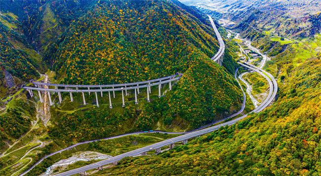 拖乌披彩一山横,群峰如浪画中行。一条神奇的天路在拖乌山盘旋而上,在美轮美奂的山间画出一道最美弧线。秋天的拖乌山,宛如自然界最伟大的艺术家,用色彩诠释着生命的丰富与奇妙。从山腰到山巅,十里彩林绵延不断,所见之处,皆是眼花缭乱的七彩世界,让人陶醉其中,仿佛置身于一个童话世界。(图文由石棉县委宣传部 周万龙提供)