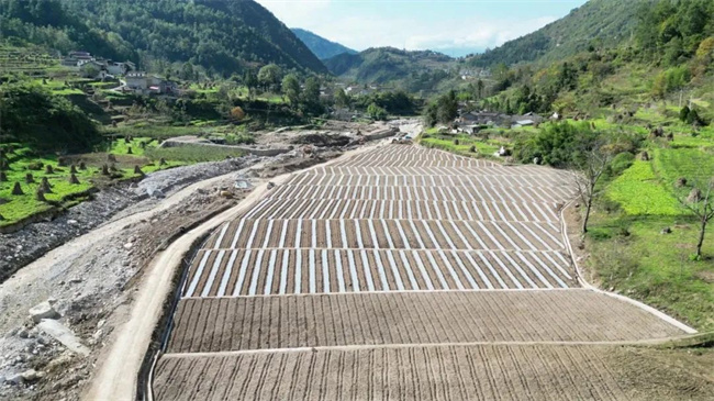 另一边的马烈乡马烈村水毁耕地恢复工作也已进入尾声。在马烈乡马烈村农田恢复现场,新栽种的作物随风摇曳,显得勃勃生机。目前,马烈乡马烈村2组、4组13个地块20余亩水毁耕地工作已完成百分之八十,新增加的10亩农田正在进入土地平整阶段。