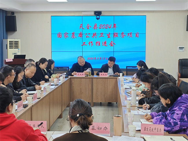 11月13日,雅安市天全县卫生健康局召开天全县2024年国家基本公共卫生服务项目工作推进会。县卫生健康局各业务股室,各县级公立医疗机构分管院长,县均等化指导中心、各乡(镇)卫生院相关负责人等共计40余人参加会议。会议由副局长艾成强主持,局党组书记、局长王秋涛出席会议。