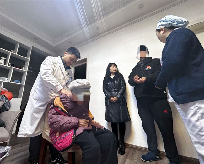 义诊现场,听说小区内有位89岁行动不便的老人,外科健康管理团队、中医与康复健康管理团队医务人员立即提供上门服务。针对老人常年在家行动不便、脊柱变形的情况,医务人员为其进行健康科普宣传,叮嘱老人及其家属如何合理搭配营养,怎样运动肢体,预防褥疮和血栓。同时向老人的家属宣传“大健康服务管理平台”中“医疗服务”功能下的“居家医疗”模式。今后,患者及家属登录小程序后,可用手机点击“居家医疗”模块,根据患者健康医疗需求进行线上申请预约,医院后台审核通过后,即可派遣医护人员前往患者家中提供医疗服务。