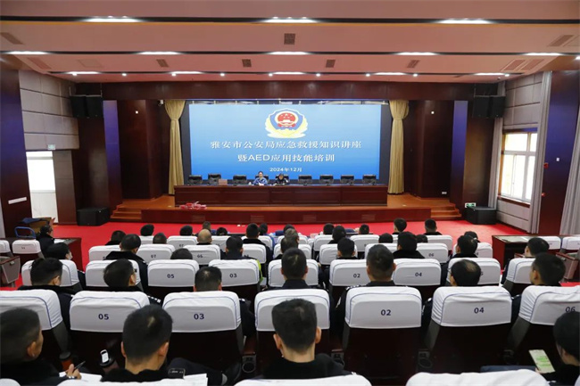 12月4日,雅安市公安局联合雅安市紧急救援中心开展应急救援知识讲座暨AED应急救护技能操作培训,150余名民辅警参与培训。