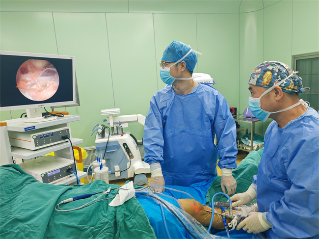 “传统的开放手术是在腘窝处切一个8到10厘米的切口,切口长、创伤大,只能切除腘窝囊肿,不能对膝关节原发病因进行治疗,术后复发率较高;而关节镜下微创腘窝囊肿切除术仅需3至5个0.5CM的小切口,插入关节镜镜头及器械,将囊肿壁完整切除的同时处理膝关节原发病,具有关节功能影响小、恢复快、低复发率等优点。”据桑泽坤介绍,名山区人民医院有先进的关节镜手术设备,骨科团队将继续深耕微创技术,满足患者多层次的就医需求,更好地守护百姓健康。