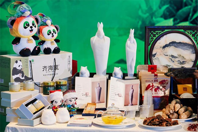 活动现场,宝兴的农特产品琳琅满目。从肉质鲜美的香肠、酱肉、火腿和嚼劲十足的风干牦牛肉,滋补养生的有机金丝皇菊、有机山药,再到大熊猫、绿尾虹雉、汉白玉等文创产品,每一件产品都承载了宝兴独特的历史文化记忆,散发着宝兴好品质和好味道。这些产品不仅展现了宝兴得天独厚的自然资源,更展现了宝兴在汉白玉产业、农业特色产业发展方面取得的成效。