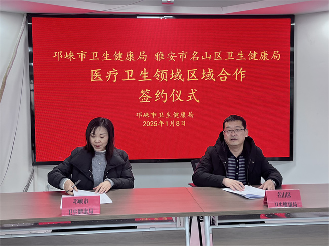为深入贯彻落实成雅毗邻区(市)县区域合作工作要求,扎实推进名山区与邛崃市在卫生健康领域结对合作,促进医疗卫生事业高质量发展。近日,雅安市名山区与邛崃市医疗卫生区域合作签约仪式在邛崃举行。邛崃市卫生健康局党组书记、局长张丽,名山区卫生健康局党组书记、局长陈颗及部分医疗机构负责人参加了签约仪式。