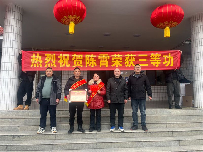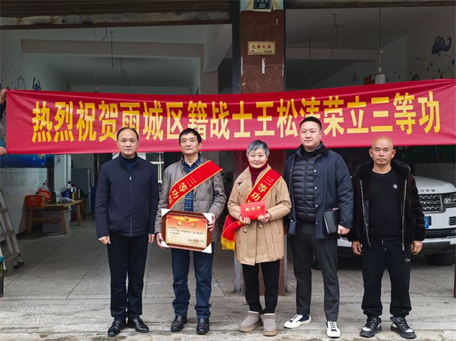 喜报传佳讯,家属享荣光。“一人当兵、全家光荣”,在上里镇,雨城区退役军人事务局、上里镇退役军人服务站共同为荣立三等功现役军人陈霄家庭送上喜报和慰问金,并向他们表示祝贺,感谢他们为国家、为部队培养出优秀人才。2025年春节期间,雨城区发扬拥军爱民的光荣传统,集中向16个荣立三等功家庭,29个“四有”军人家庭送立功喜报,在全社会营造热爱国防、敬重军人、优待军属的社会风尚,进一步增强让军人成为全社会尊崇的职业的浓厚氛围。
