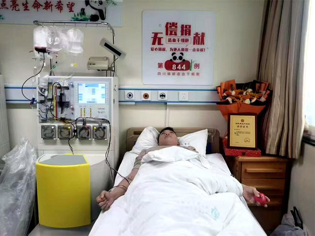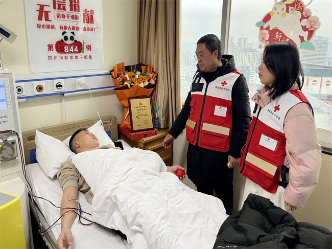 2月19日,张颖在红十字会工作人员及家人陪同下踏上爱心征程。在成都完成体检后,连续4天注射动员剂期间,医护团队24小时监测身体反应,县红十字会工作人员全程陪同。“就像多了群专业又贴心的家人。”张颖笑着回忆道。