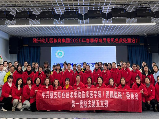 2月26日,雅安职业技术学院附属医院第一党总支第五党支部儿科医护人员,走进雨城区第十五幼儿园,为雅兴幼儿园教育集团的保育员、教师等60余人进行关于儿童常见急救处置的相关培训。