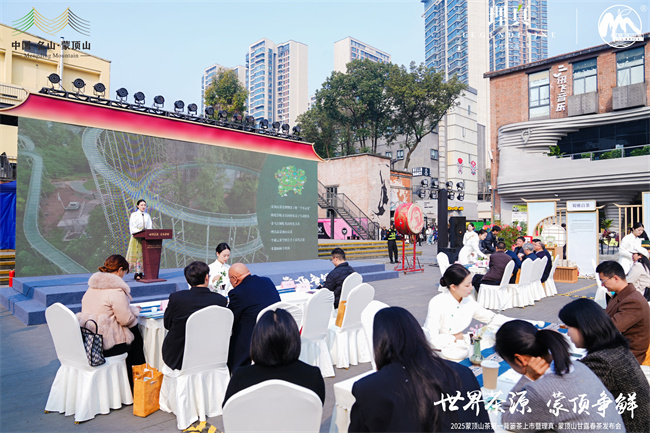 3月1日,成都东郊记忆缕缕茶香沁人心脾,2025蒙顶山茶第一背篓茶上市暨理真·蒙顶山甘露春茶发布会在此举行。