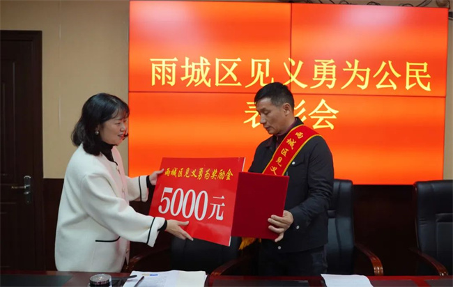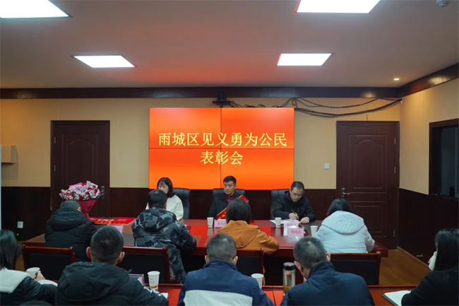 为进一步弘扬见义勇为精神,在全社会营造匡扶正义、崇德向善的良好风尚,3月4日,雨城区召开见义勇为公民表彰会,对见义勇为公民进行奖励。