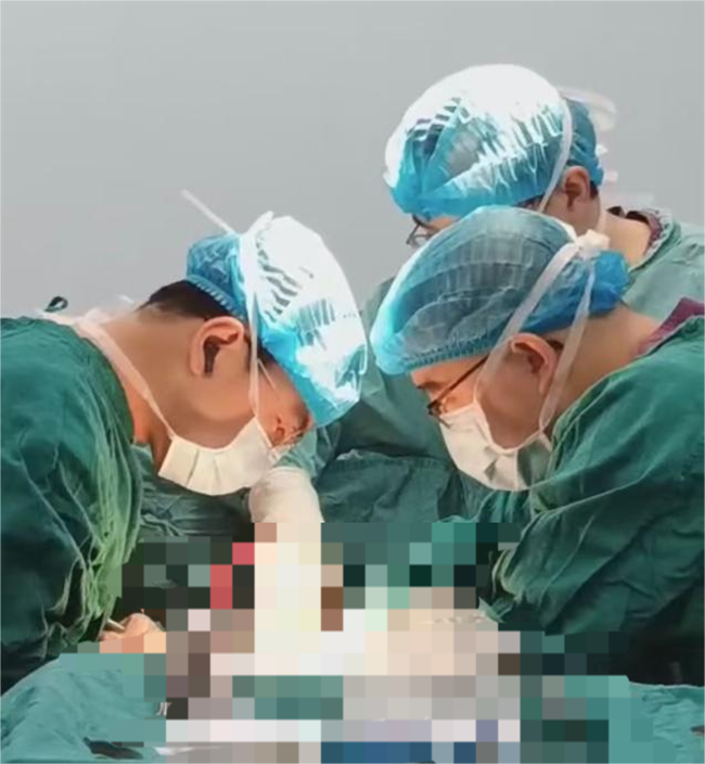 “紧急抢救手术,一切都是未知的,患者生命垂危,我们需要在最短的时间内控制出血,为输血和其它抢救措施争取时间”程鑫回忆道。经过紧急麻醉、开刀入腹后,呈现在医生团队面前的是腹腔内将近4000ml的积血,迅速清理积血后发现左肝巨大肿瘤破裂喷血,这是腹部外科最凶险的急症之一,死亡率极高。此时患者的血压仍在进一步下降,最低时达到54/40mmhg。“我们立即用多张纱布填塞压迫出血点,并且迅速阻断肝门初步控制出血,同时麻醉的同事继续维持患者的血压,但是由于失血太多,还达不到能继续手术切除肿瘤的条件”程鑫凭借丰富的经验、敏锐的直觉,告知台下医生:“目前出血暂时控制,请继续紧急输血,待患者生命体征稍平稳,我们只有迅速完整切除肿瘤,才能保障患者的预后!”。在麻醉科手术室和输血科紧急调配的8单位悬浮红细胞及800ml血浆的保障下,患者生命体征逐渐恢复,后续普外科手术团队凭借精湛技术,仅20分钟就完整切除患者左肝肿瘤。整个手术过程紧张有序,患者病情得以稳定,手术后不到一周,患者就康复出院,后续还将进行多种辅助治疗。